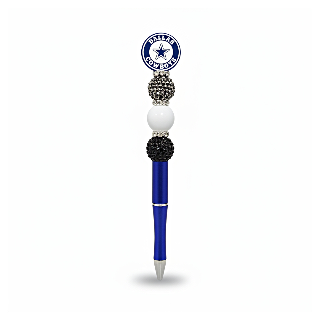 How ‘Bout Them Cowboys! Rep America’s Team in style. This Dallas Cowboys pen features the iconic star logo topper and a bold, sleek stack of navy, silver, and white beads.
