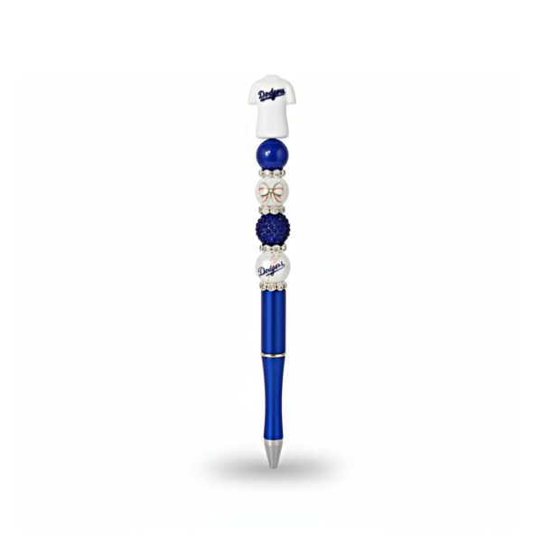 Bleed Dodger Blue! Root for the home team with this custom fan pen. It features a classic white Dodgers jersey topper and a unique bead stack that includes a cute baseball-themed accent.